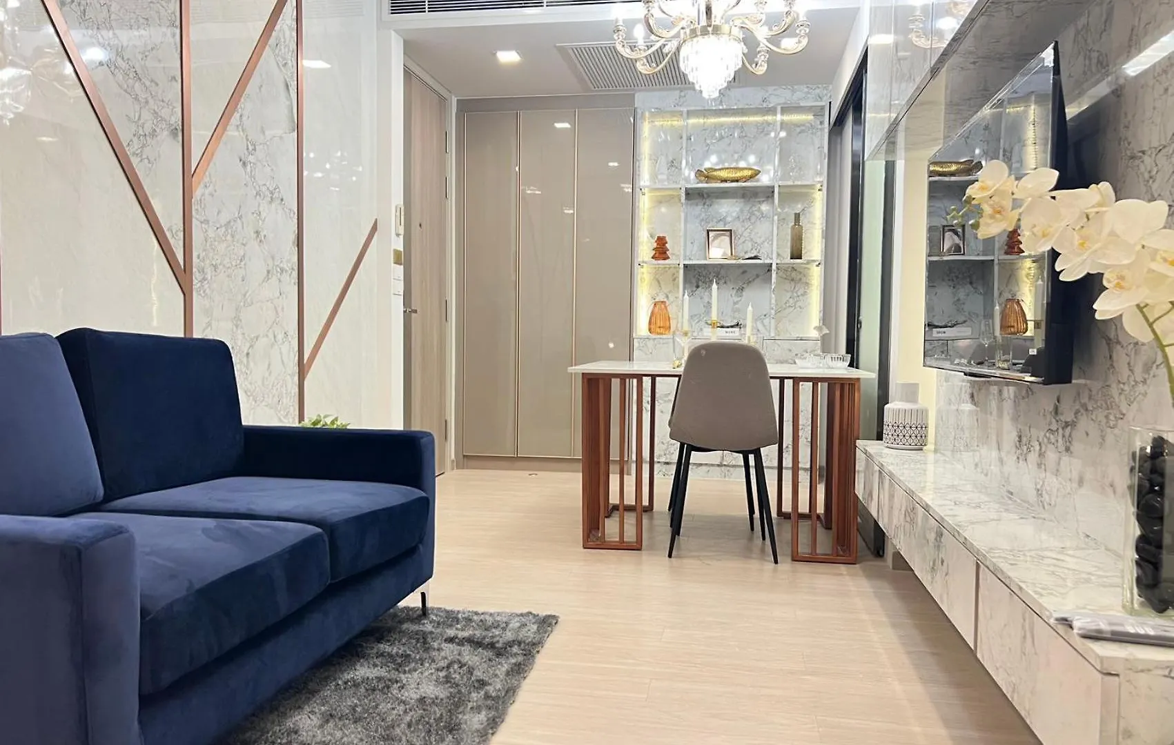 Het appartement ligt in de Huai Khwang wijk van de stad, op 22 minuten rijden van de luchthaven Bangkok Don Meung.